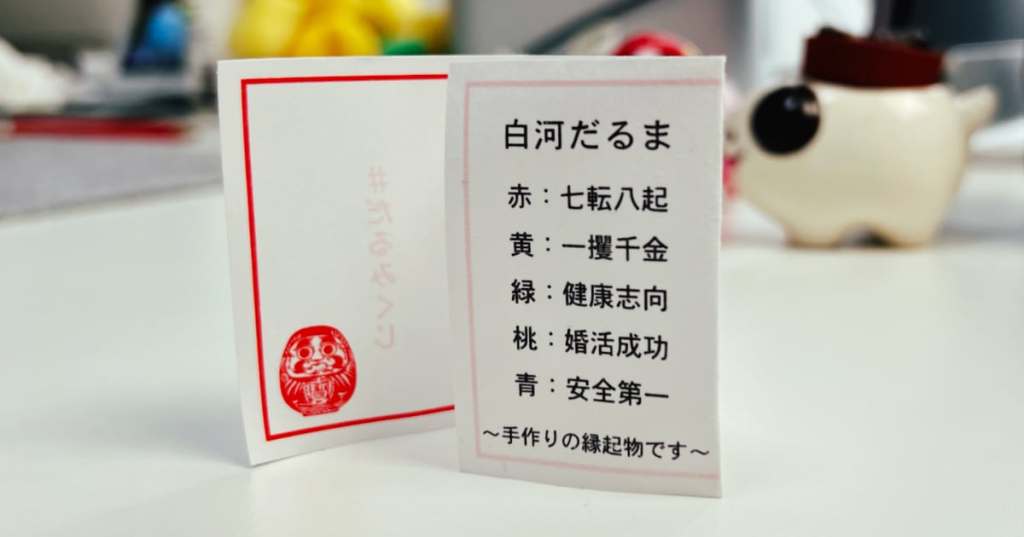 我按照说明书给小布丁讲了可以选择五种颜色来点眼睛,分别对应着坚韧、财运、健康、恋爱和安全。小布丁第一轮儿先选了坚韧、健康和安全三个颜色(幸好没选恋爱!)。犹豫一番后,她最后决定使用红色(七転八起),直译过来应该是即使摔倒了七次,第八次也会站起来。