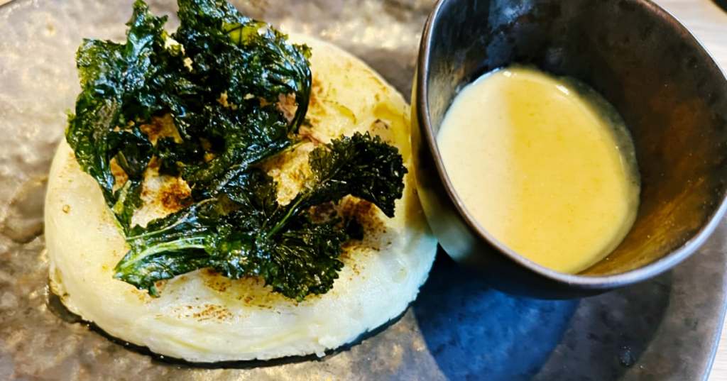 这家餐厅应该算是炭火烧烤店,但主打西班牙和日式料理混合风。虽然菜量不是很大(估计是走Tapas的路线),但是每一样菜品都很精致。不是简单把日料西化,而是尝试把双方的特色结合起来。我们尝试了下面几个菜,做的都很有特色。