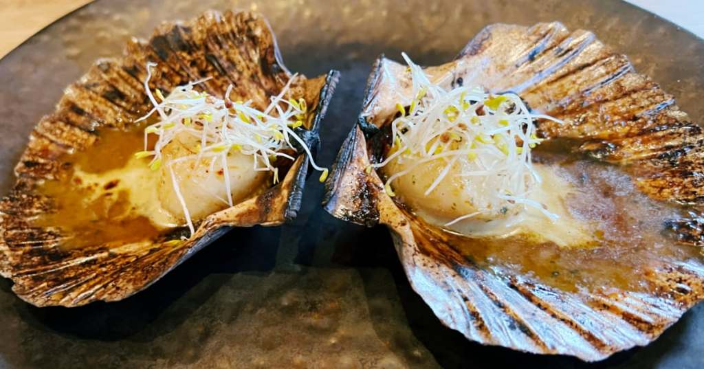 5. 炭火烤扇贝:扇贝很鲜很嫩,配餐厅自制的姜酱黄油。不过扇贝个头偏小。