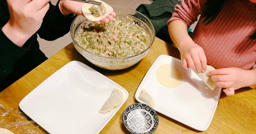 之后小丸子又带着她一起包饺子。现在为了方便,在家里包饺子时都是直接买饺子皮,缺少了一些小时候那种一边和面包饺子,一边看春晚的感觉。下午还尝试让小布丁看了一会儿春晚,不过她一点都不感兴趣,最多只是根着比较动感的音乐扭两下。