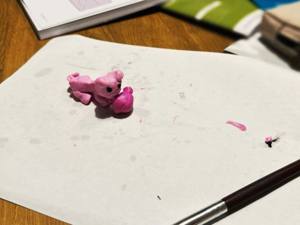我突然意识到这是一个很好的机会,来和她一起学习制作Stop Motion动画。做Animation除了可以让她学习一些动画的基本知识,还可以培养她讲故事和Clay建模的能力。这次我先让小布丁用粘土制作了一个简单的虫子模型,并尝试用手动作让它动起来。这个简单的项目是直接用手机的Stop Motion Studio拍摄的,效果出乎意料地好。之后我门又做了更复杂一点小猪,接着做了一个让小猪吃糖果的动画。